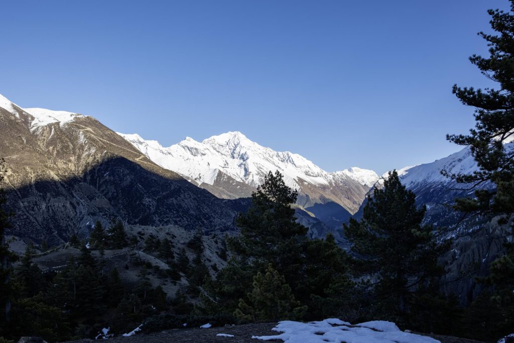 This creates a stunning contrast between snow-covered peaks and colorful mountain forests, making the trekking experience even more scenic.