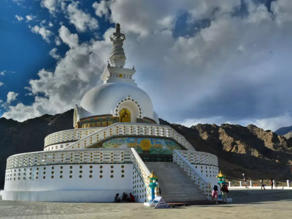 Start your morning with a visit to the Shanti Stupa. This beautiful white-domed structure is perched on a hilltop and offers panoramic views of the surrounding mountains and Leh town. It’s a peaceful spot where you can take in the scenery and enjoy the serene atmosphere.