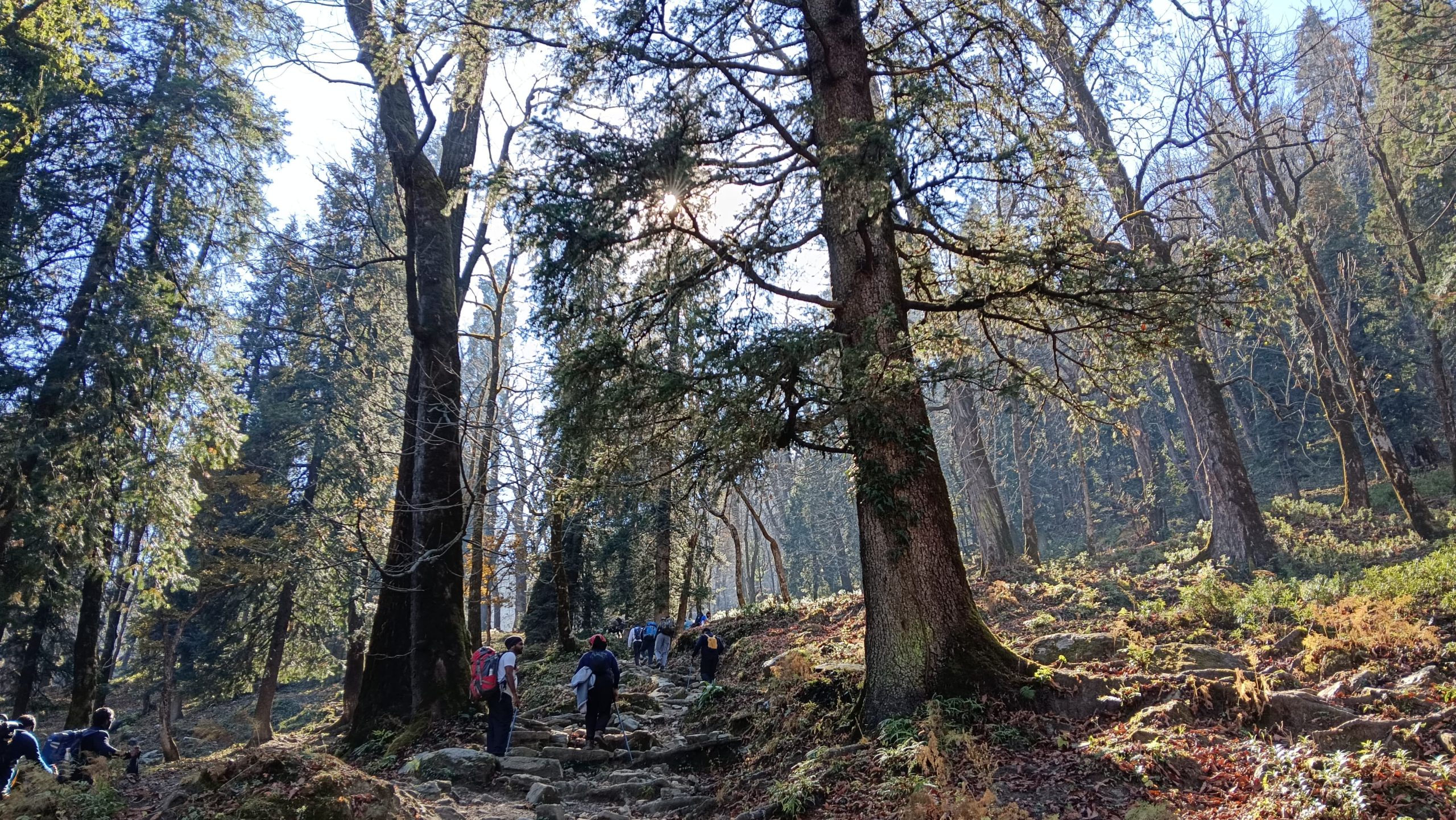 Winter is considered as one of the best seasons to trek to Kedarkantha because of its stunning panoramic views of snow-capped Himalayan peaks, frozen lakes, and pristine forests blanketed in white. Winter landscape completely transforms Kedarkantha, some also say it looks like the land of Narnia. You can Also see famous peaks like Swargarohini, Bandarpoonch and Ranglana from the trail.